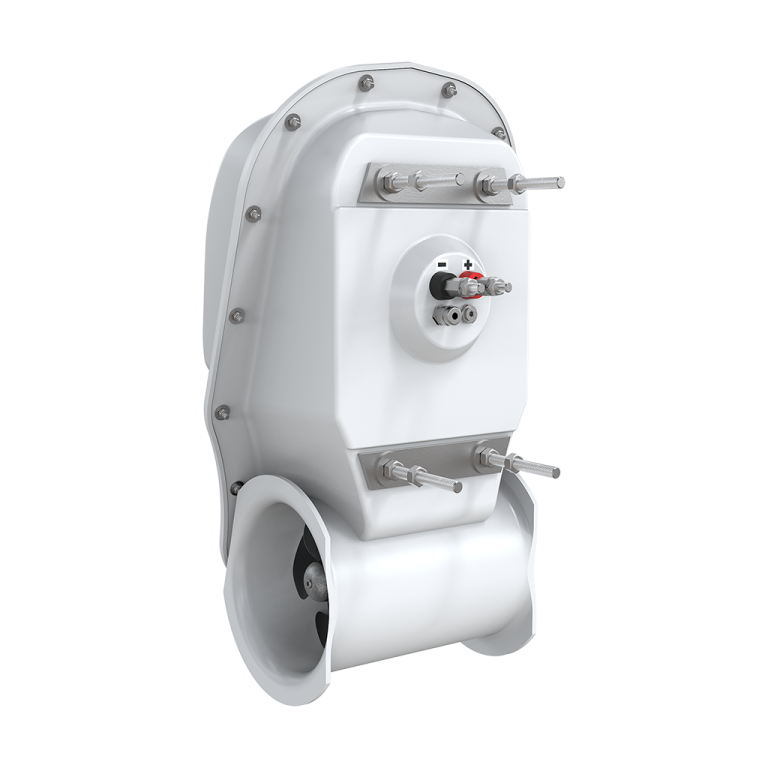 Twin propellers can provide more thrust than a single propeller system in the same tunnel diameter. We use this system in our mid-range models, where high thrust is required in small tunnel diameters. Due to the compact design and high performance, the twin models have become the thrusters of choice among boatbuilders worldwide.